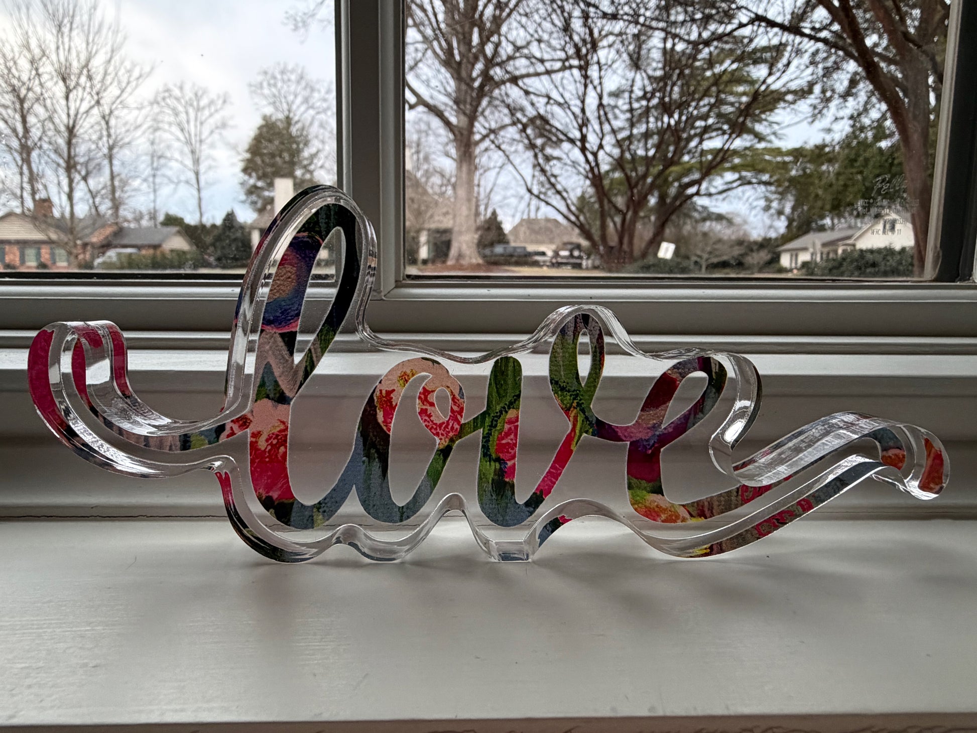 4" acrylic LOVE (.50" thick) featuring my "Darling" painting