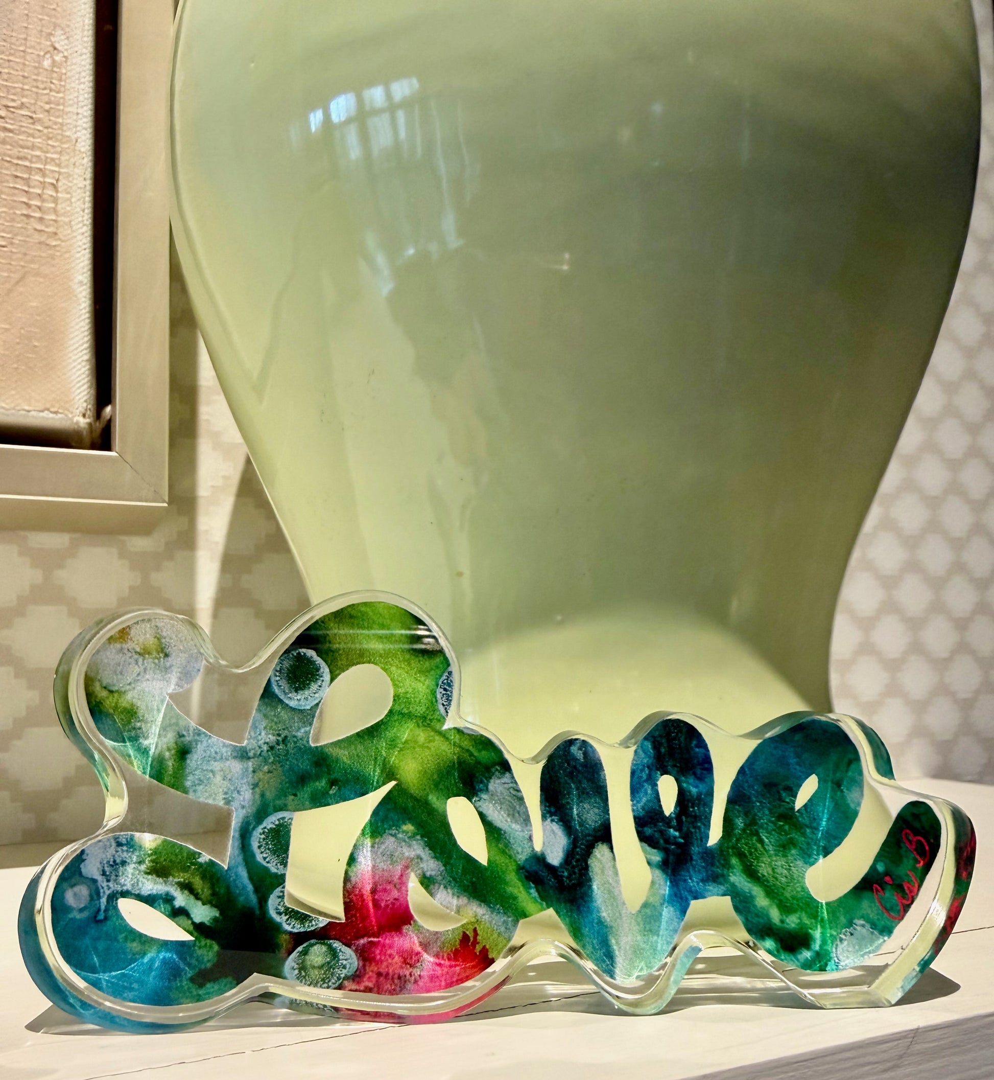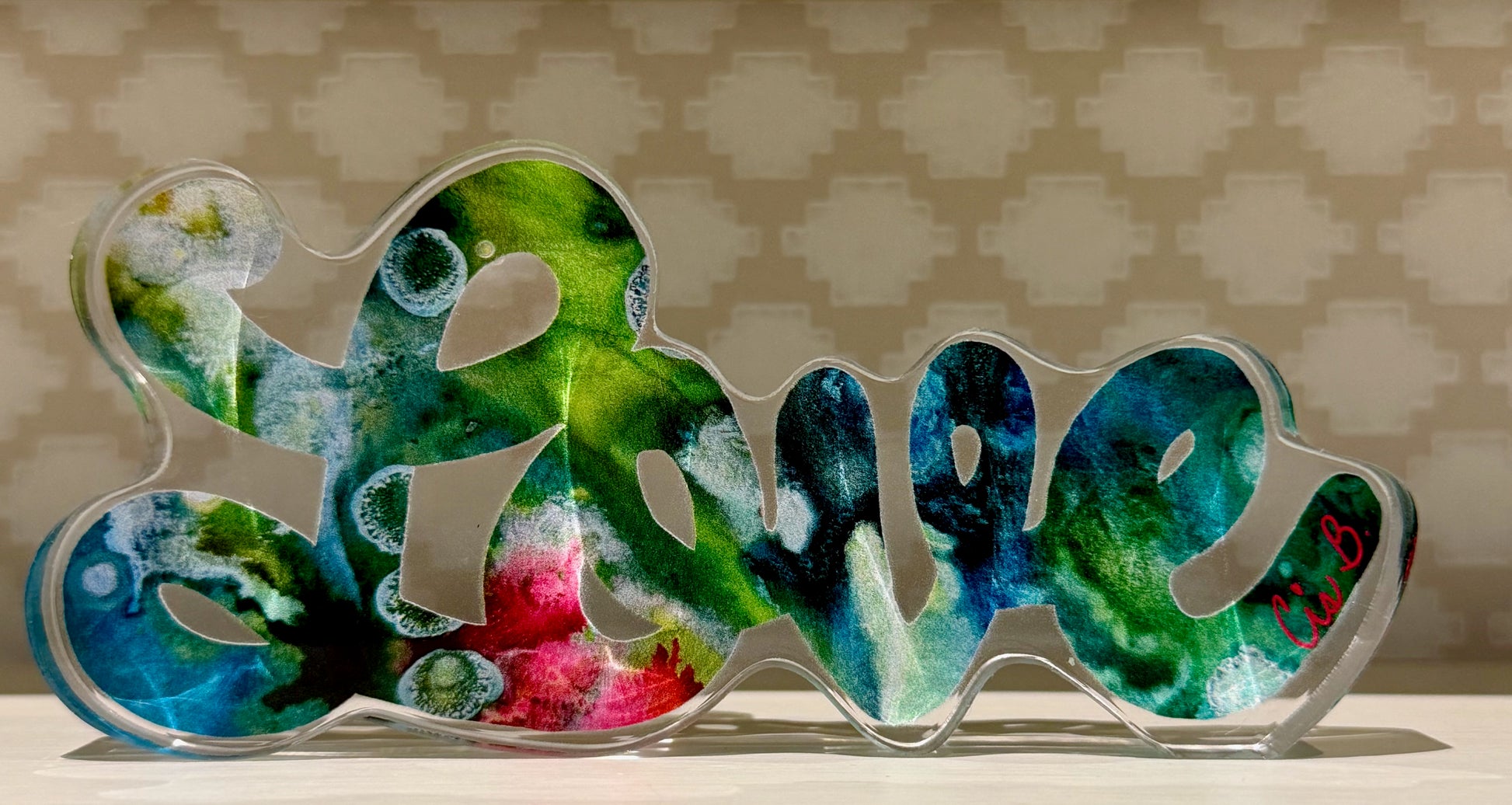 4" acrylic LOVE (.50" thick) featuring my "Lapis Lazuli" painting