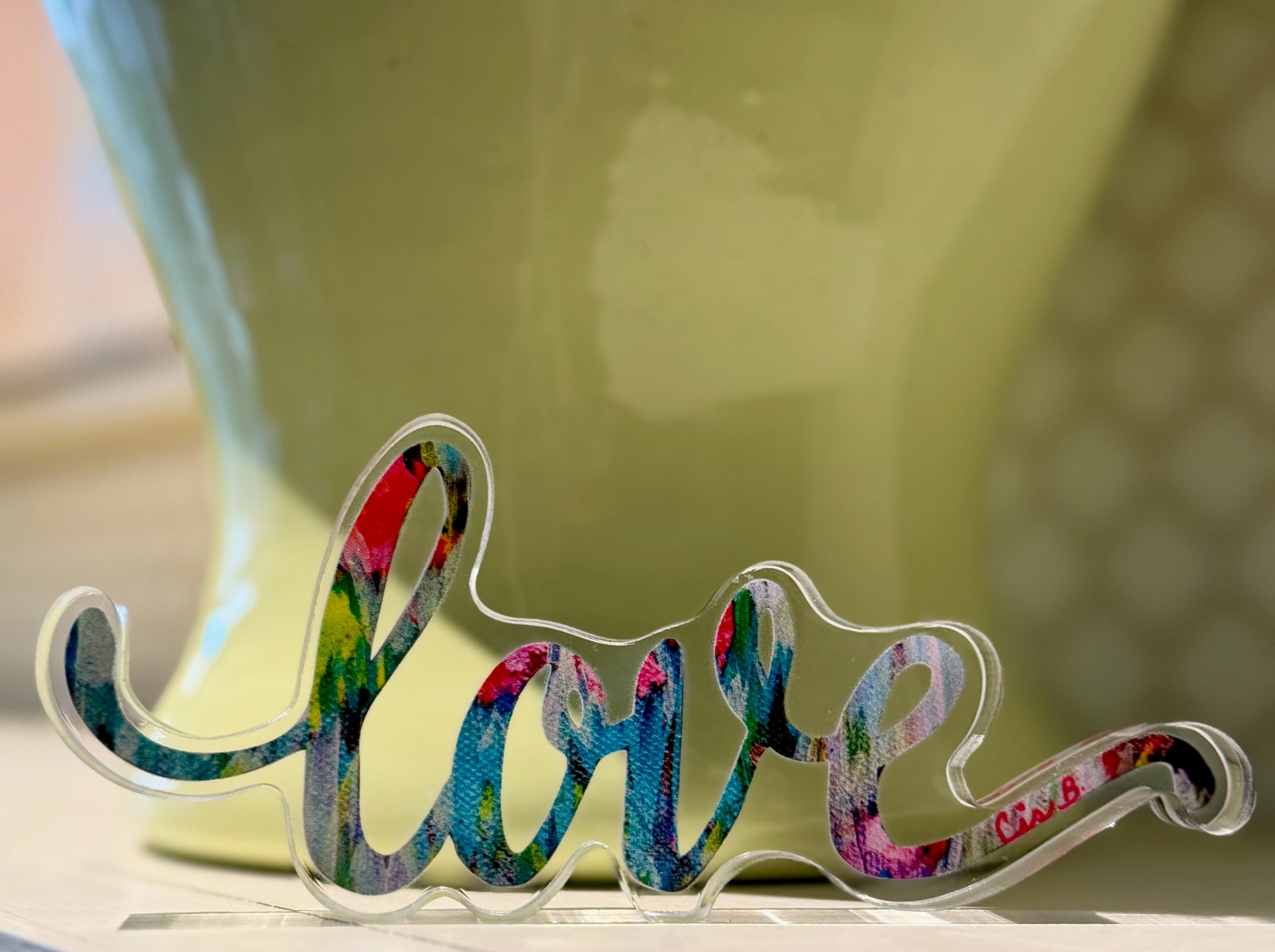 4" acrylic LOVE (.50" thick) featuring my "Granville" painting