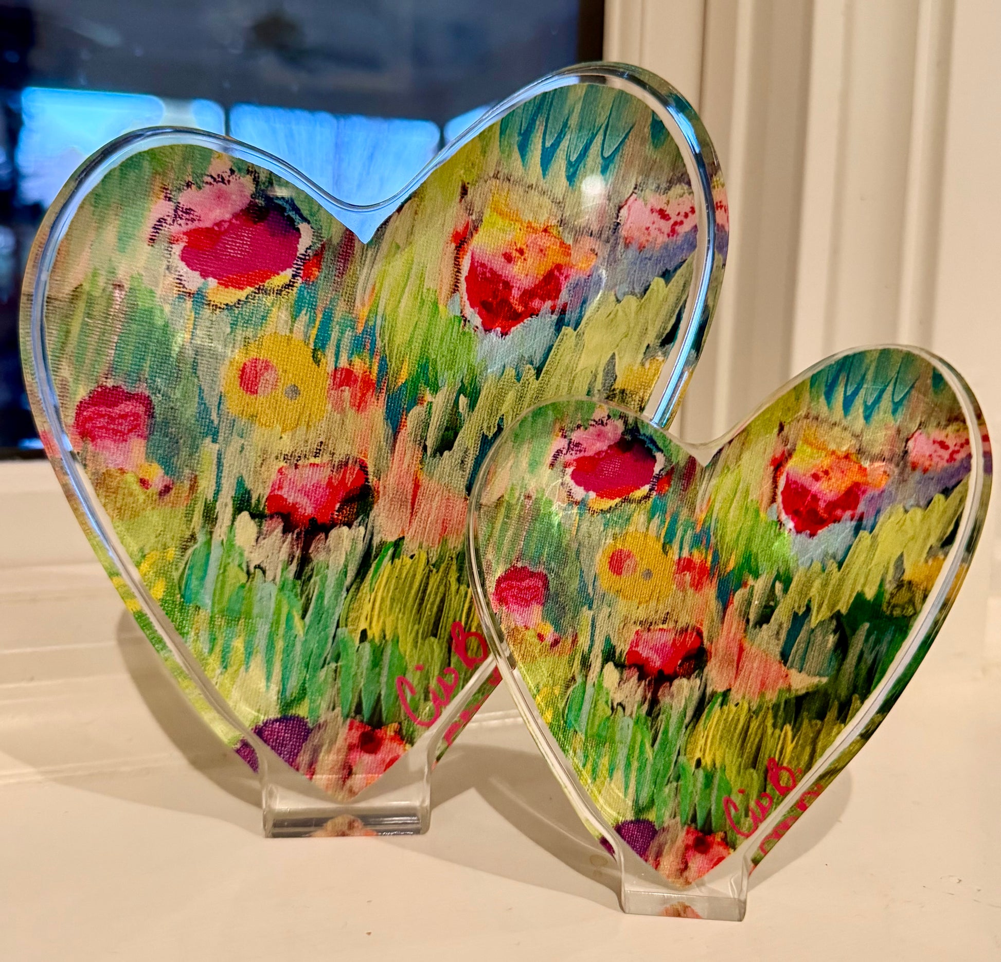 These 4" acrylic stands feature one of my paintings in the shape of a heart. Perfect gift for any occasion.